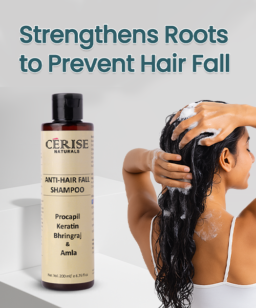 Cerise Naturals Anti Hair Fall Shampoo is a combination of Procapil, Keratin, Bhringaraj and Amla.