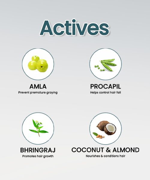 Amla: Amla is a rich source of fatty acids, phytonutrients, vitamins and minerals which stimulates healthy hair growth, controls premature greying, make hair smooth and shinier.
